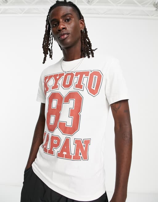 Bershka T shirt met Japanse stadsprint in beige ASOS Very well made.