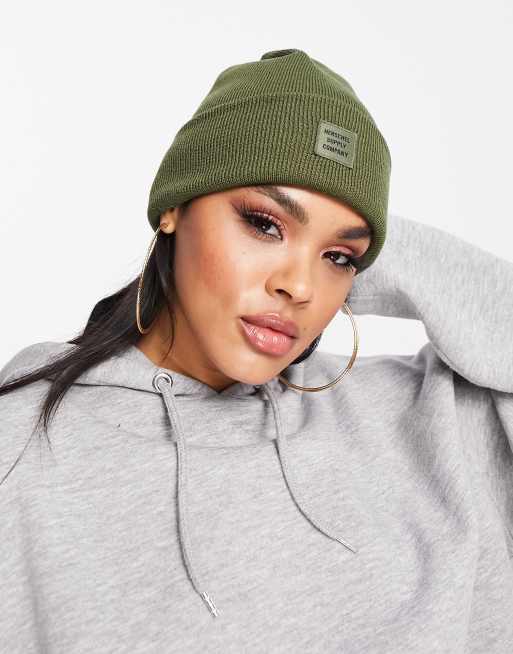 Herschel Supply Co Abbott Beanie in kaki met logo in dezelfde tint Very well made.