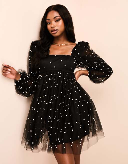 ASOS LUXE tulle baby doll dress with pearl embellishment in black Very well made.
