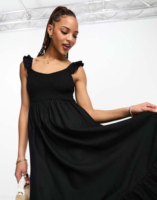 New Look frill sleeve shirred midi dress in black ASOS Very well made.