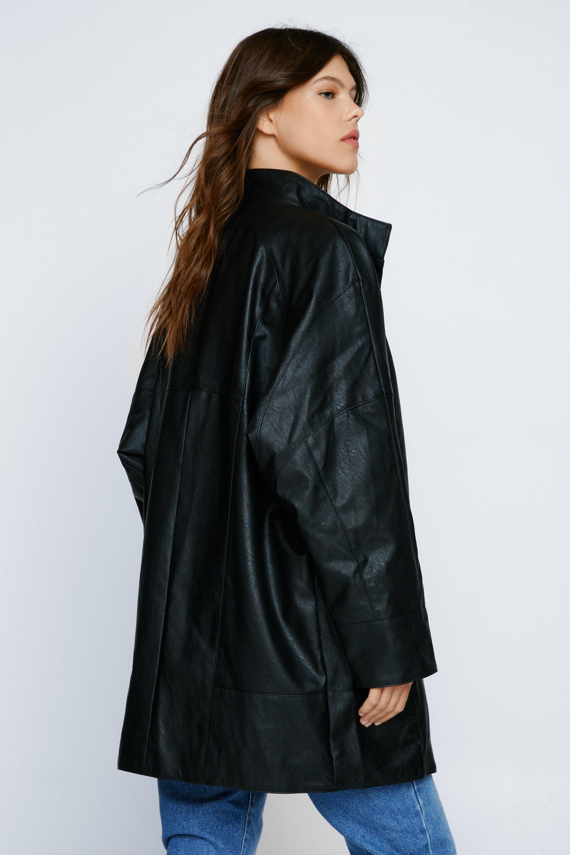 Women s Oversized Faux Leather Longline Jacket Boohoo UK Very well made.