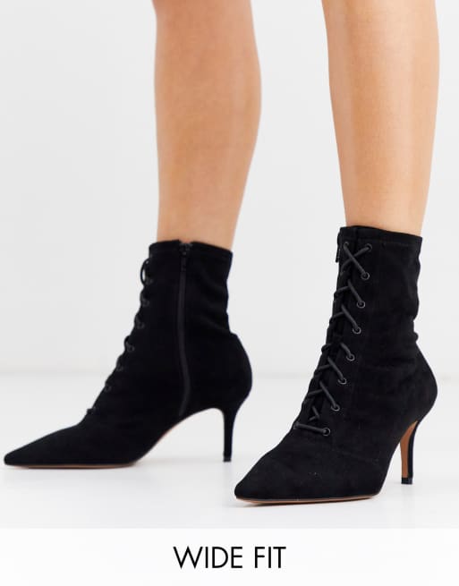 ASOS DESIGN Wide Fit Respect lace up kitten heel boots in black Very well made.