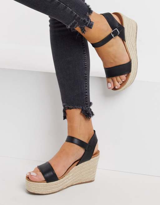 Wide Fit Black Leather Look Espadrille Wedge Heel Sandals New Look Very well made.