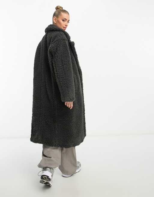 Threadbare Plus mid length teddy coat in black Very well made.
