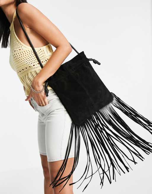 Topshop leather tassel cross body bag in black ASOS Very well made.
