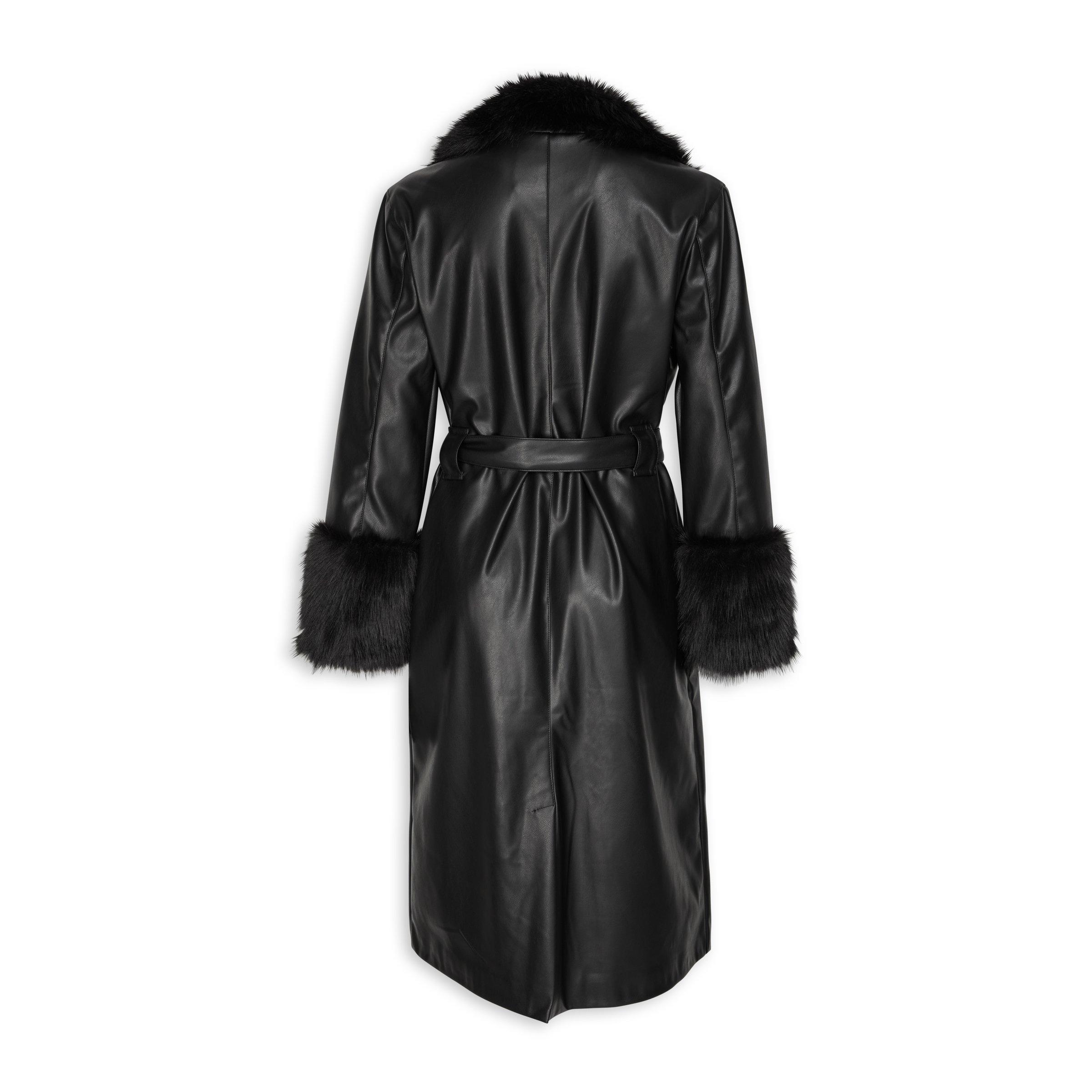 Faux Fur Trim Pu Trench Coat Very well made.