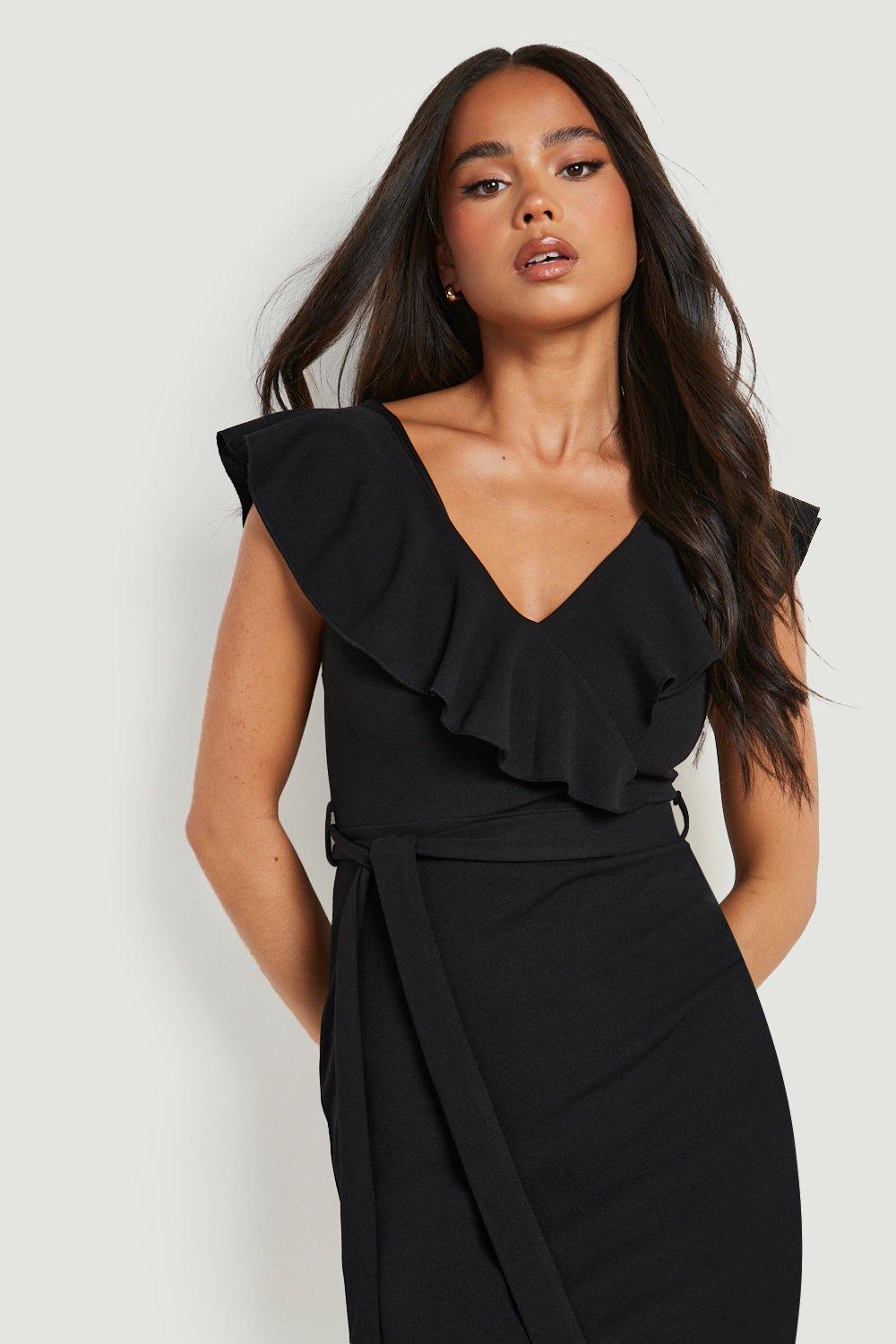 Women s Petite Belted Ruffle Midi Dress Boohoo UK Very well made.