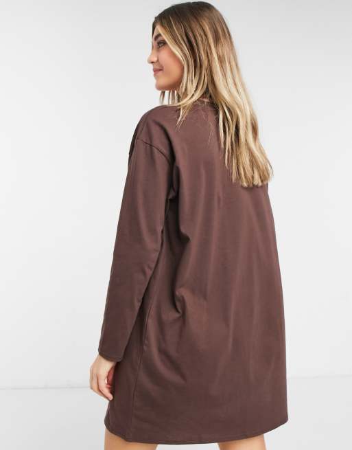 ASOS DESIGN oversized long sleeve t shirt dress in chocolate brown Very well made.