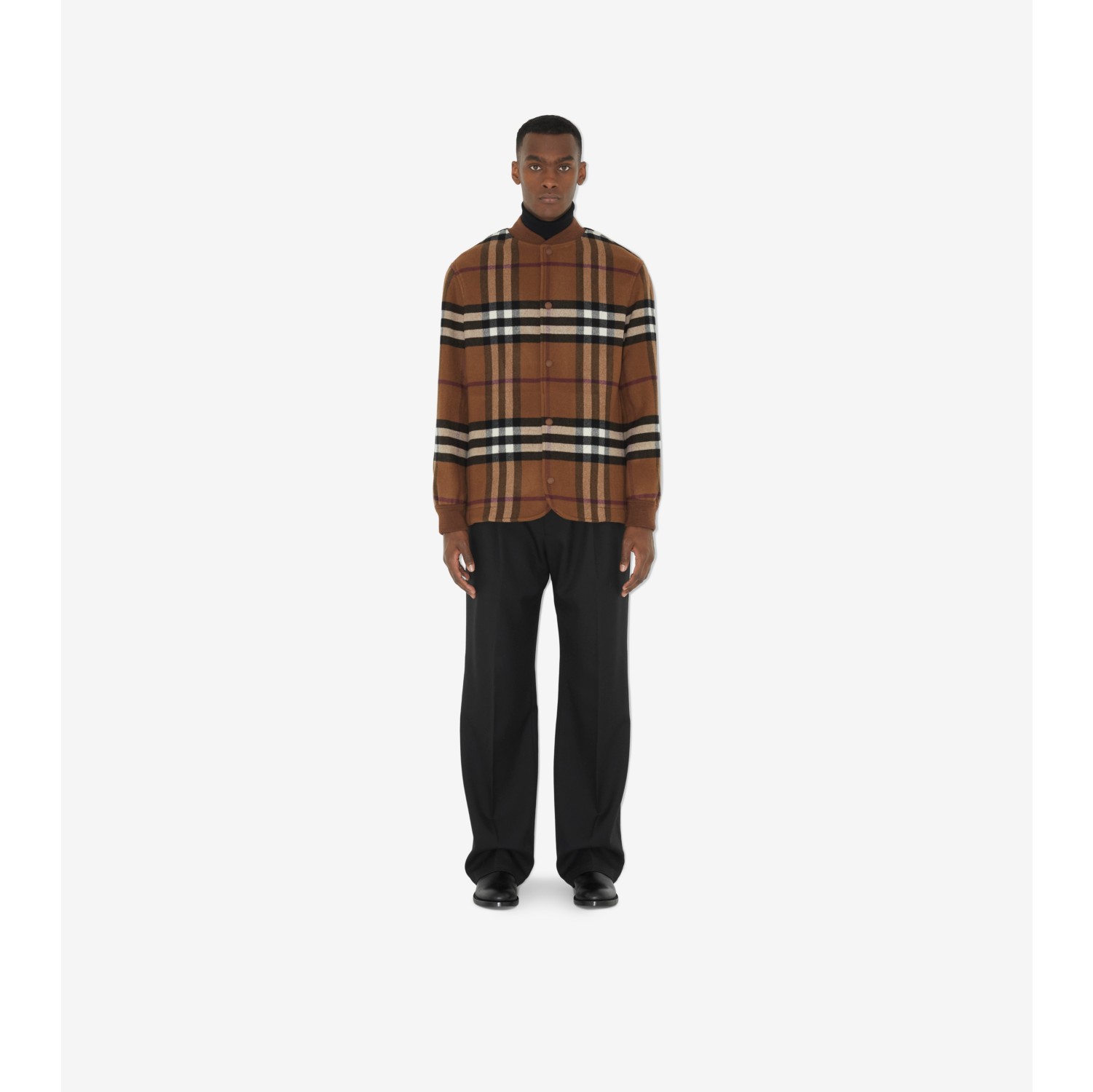Check Wool Blend Bomber Jacket in Dark birch brown Men Burberry Official Very well made.