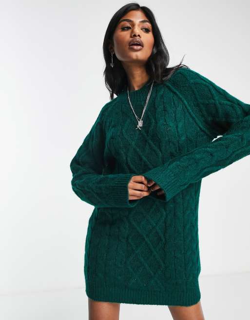 ASOS DESIGN cable knit mini jumper dress in green Very well made.