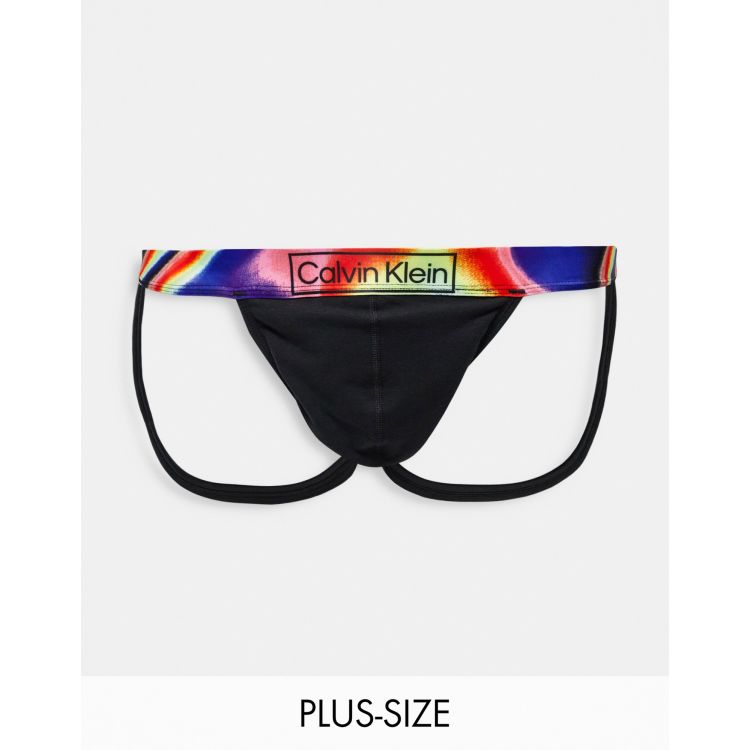 Calvin Klein Big Tall pride cotton jock strap with contrast waistband in black Very well made.