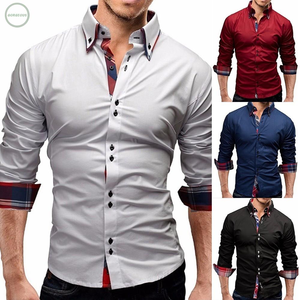 Mens doble cuello dise o s lido manga larga vestido de los hombres slim fit abotonado blanco oficina inteligente casual masculino camisas de trabajo Very well made.