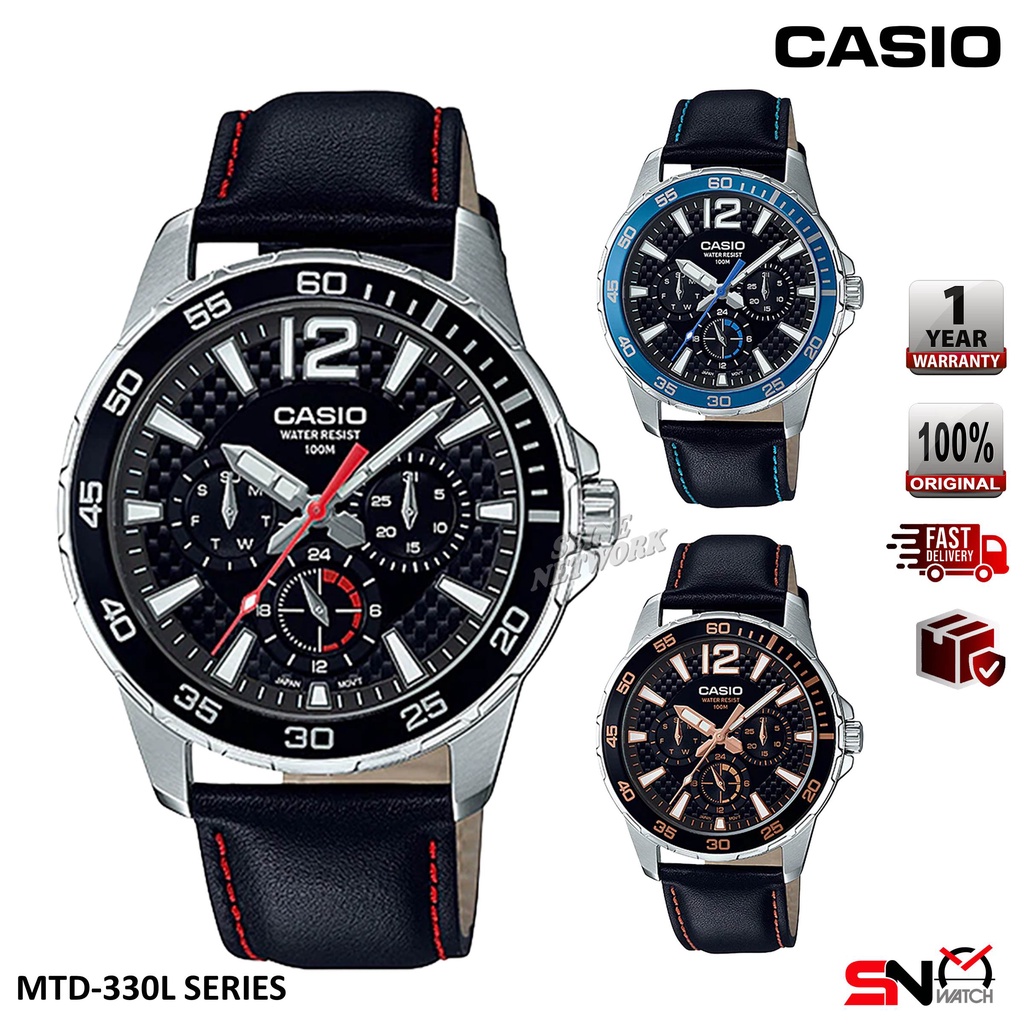 Casio MTD 330L Multi Hands Fashion Quartz Analog Black Leather Band Men s Watch Jam Tangan Lelaki Very well made.