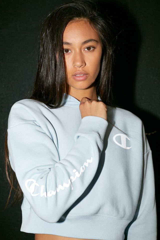 Champion UO Exclusive Blue Reflective Logo Crop Crew Neck Sweatshirt Very well made.