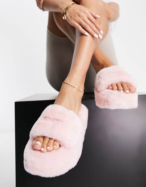 Juicy Couture stacked fur slider with juicy couture metal plaque in pink Very well made.