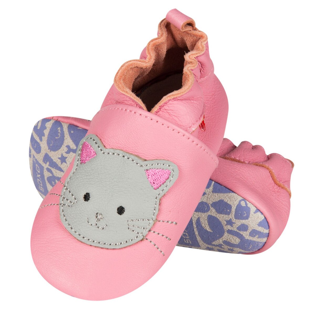 Chaussons cuir b b enfant Etoiles grises Very well made.