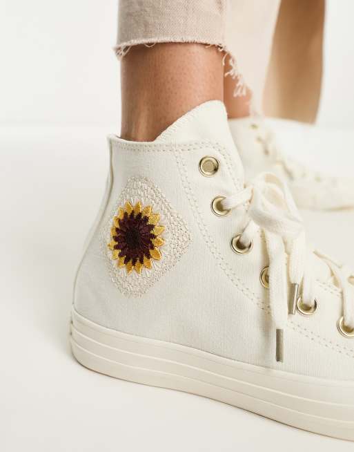 Converse Chuck Taylor All Star hi sneakers with sunflower crochet in white WHITE Very well made.