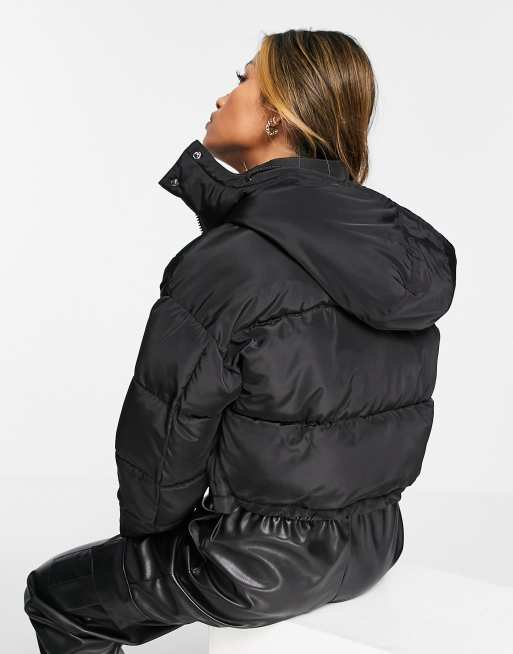 Topshop padded crop puffer jacket with hood in black Very well made.