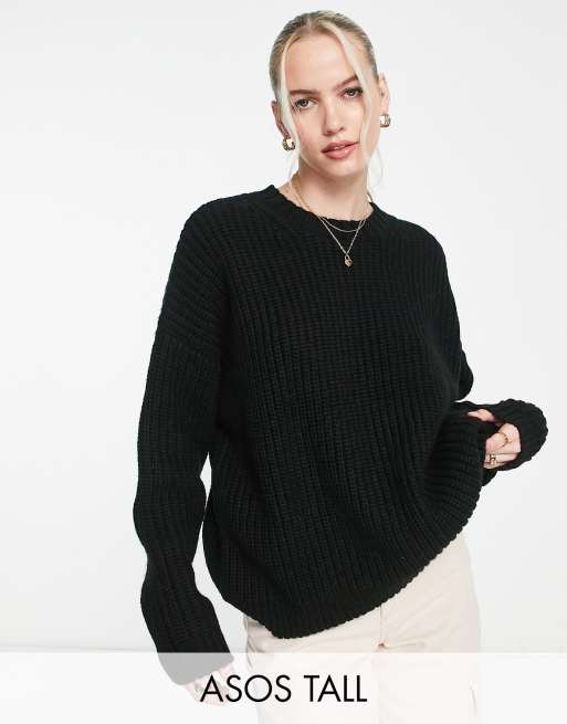 ASOS DESIGN Tall crew neck chunky rib jumper in black Very well made.