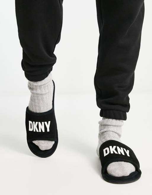 DKNY logo slider slippers in black Very well made.