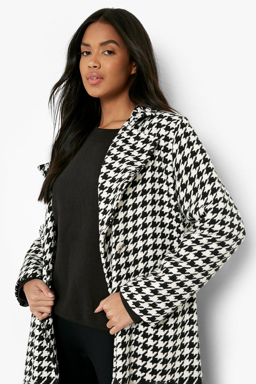 Black White Dogtooth Print Longline Coat Very well made.