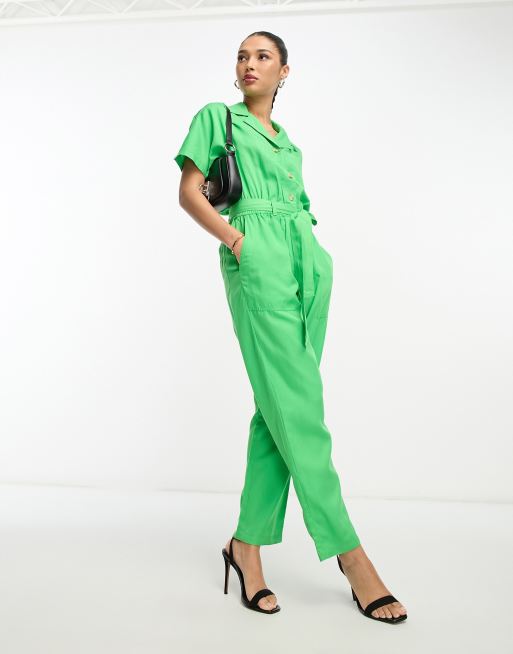 French Connection short sleeve belted jumpsuit in bold green ASOS Very well made.