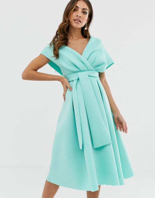 ASOS Fallen Shoulder Midi Prom Dress With Tie Detail in Green Lyst Very well made.