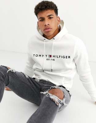 Hilfiger Monotype white men s sweatshirt with hood and logo Very well made.