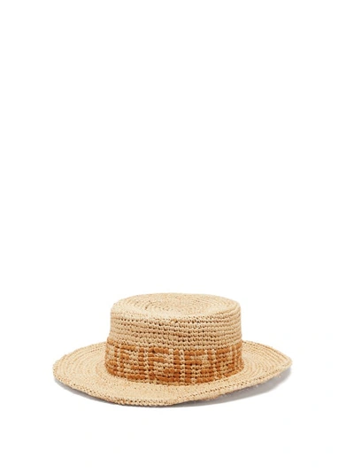 Contrasting Ff Motif Straw Hat In Beige Very well made.
