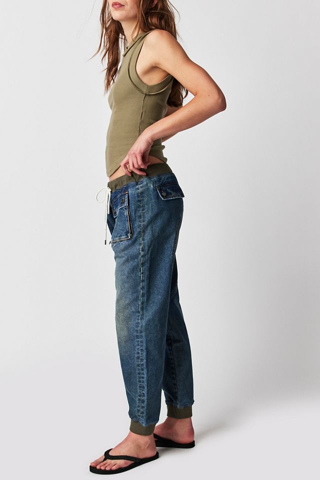 Free People Revival denim joggers in blue Very well made.