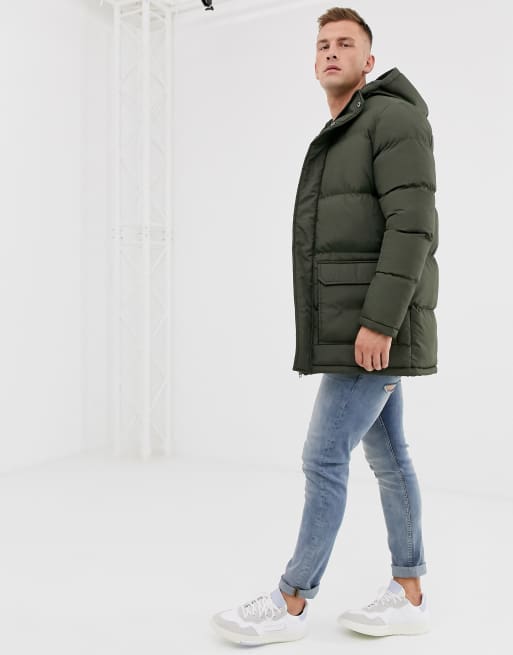 French Connection longline padded parka with hood in navy Very well made.