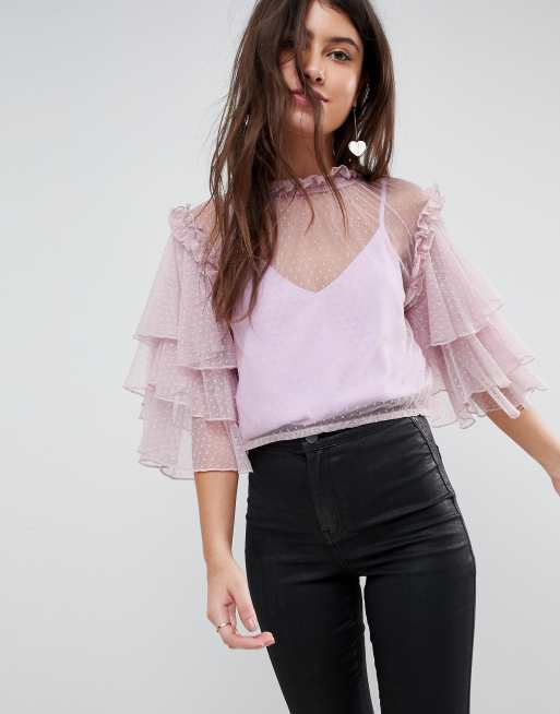 ASOS Dobby Mesh Top with Ruffle Sleeves Very well made.
