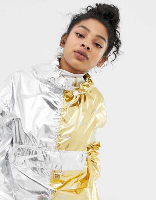Rara giacca Nike Tech Windrunner argento metallizzato nero nylon lucido grande Very well made.