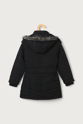 Girls black fur lined hooded long padded jacket Very well made.