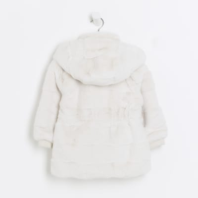 Mini girls cream hooded faux fur coat River Island Very well made.