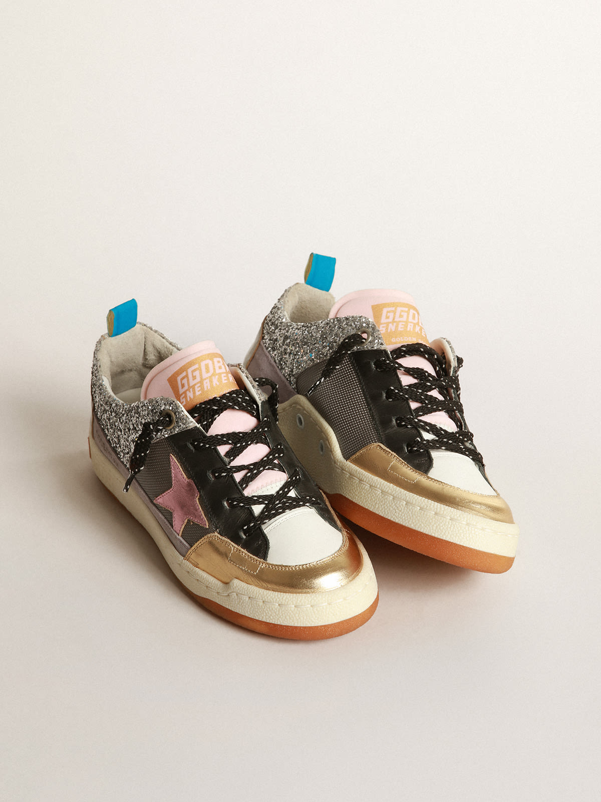 Zapatillas deportivas Yeah de malla plateada con estrella rosa Very well made.