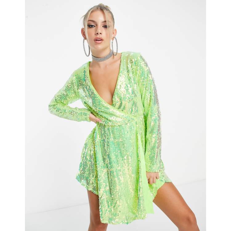 Collective the Label exclusive sequin wrap dress in iridescent lime Very well made.