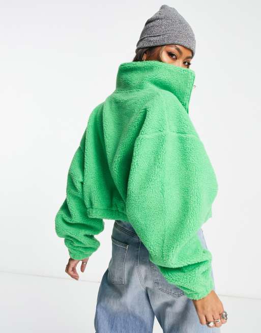ASOS DESIGN borg cropped zip up fleece jacket with batwing sleeve Very well made.