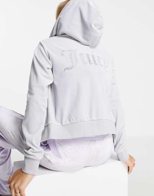 Grey JUICY COUTURE Diamante Velour Full Zip Hoodie JD Sports UK Very well made.