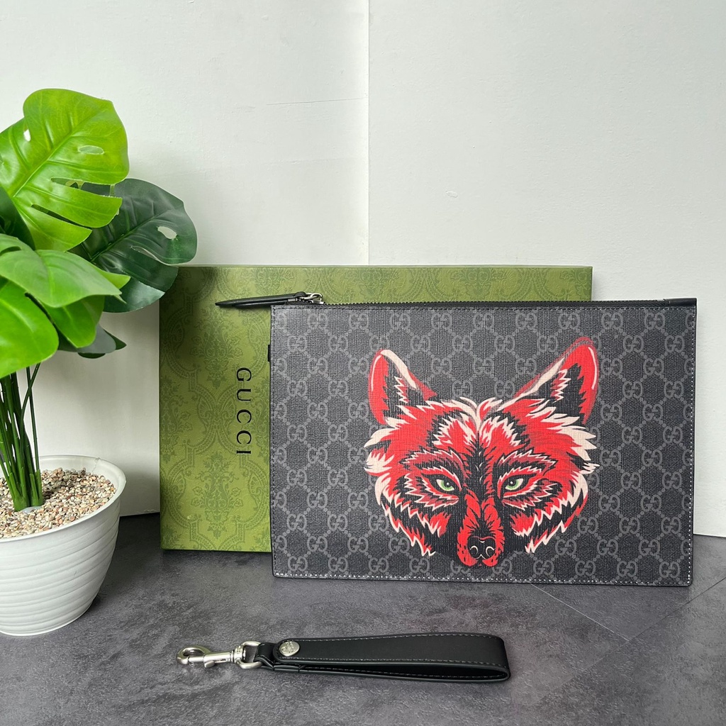 Gucci limited edition supreme clutch with wolf Very well made.