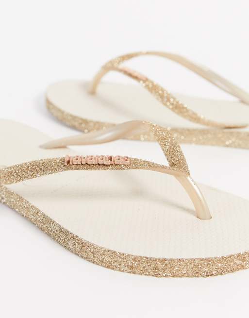 Havaianas slim flip flop in gold sparkle Very well made.