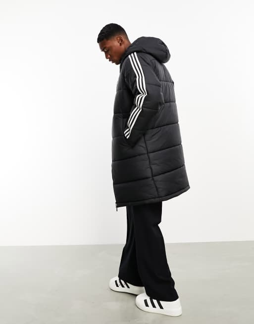 adidas Originals 3 stripe hooded long puffer jacket in black Very well made.