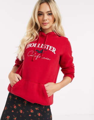 Hollister Red Hoodie Sweatshirt Long Sleeve Pullover Women Size Medium Very well made.