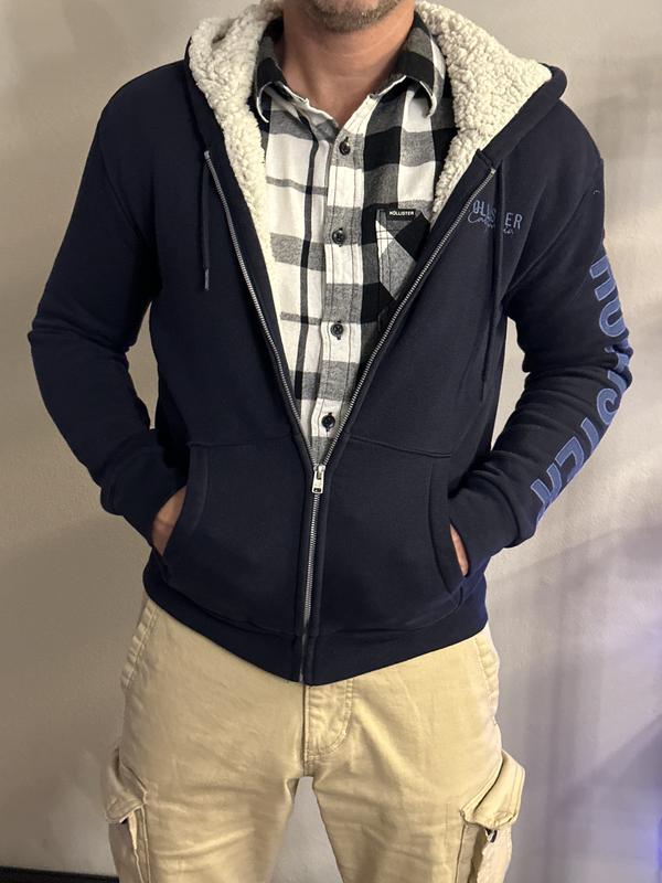 HOLLISTER SHERPA LINED FULL ZIP LOGO HOODIE SWEATSHIRTS NAVY BLUE Very well made.