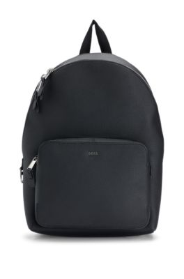 BOSS Grained leather backpack with polished silver hardware Very well made.