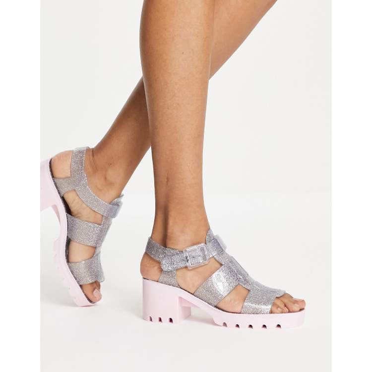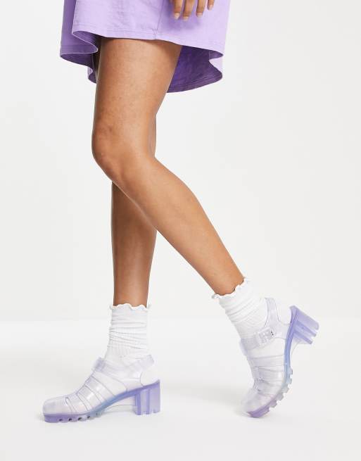 Juju jelly heeled shoes in clear and rainbow Very well made.