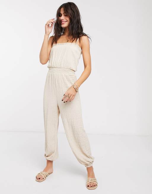 Bershka strappy crinkle jumpsuit in beige ASOS Very well made.