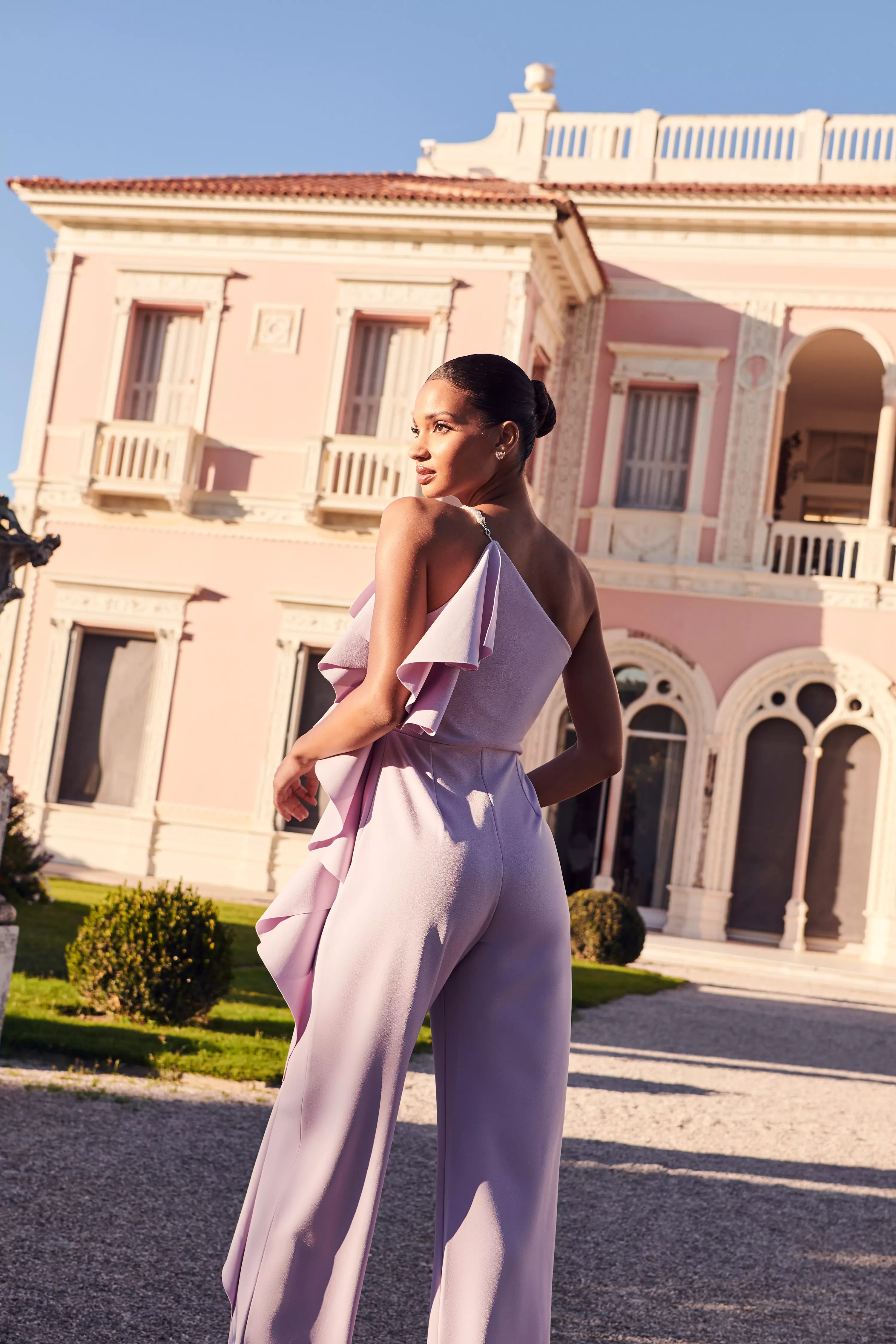 Lilac One Shoulder Frill Palazzo Jumpsuit QUIZ Very well made.