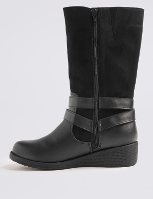Cadence Youth Girls Black Novasuede Tall Wedge Boots Very well made.