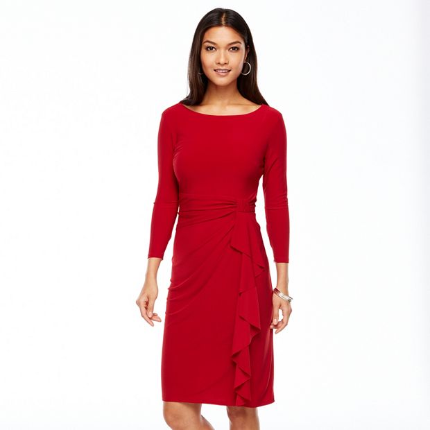 Chaps Solid Shirred Dress Women s Very well made.